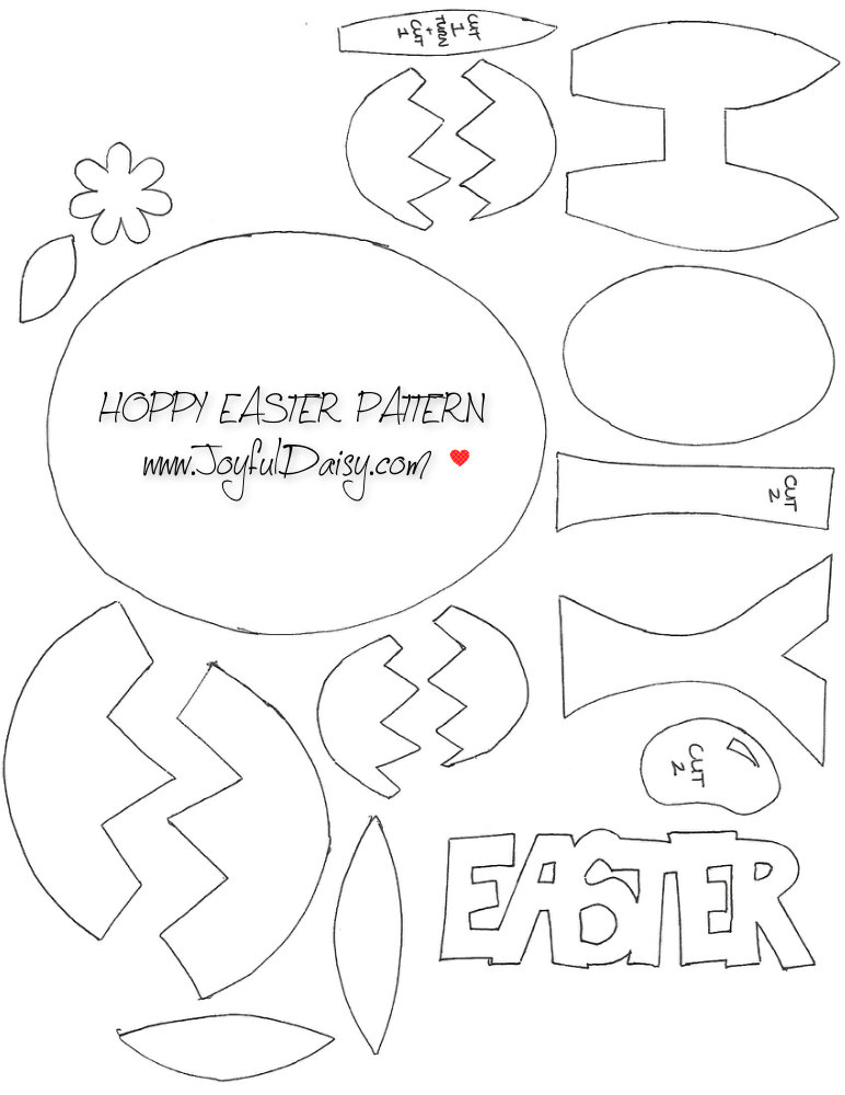 Download and print Hoppy Easter Pattern. Cut out and trace pattern pieces on desired papers. FYI, print out pattern on cardstock for easy tracing.